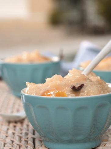 Al romper el hervor incorporamos el arroz, el azúcar, la cáscara de limón (sin la parte blanca), la rama de canela y el coco rallado.