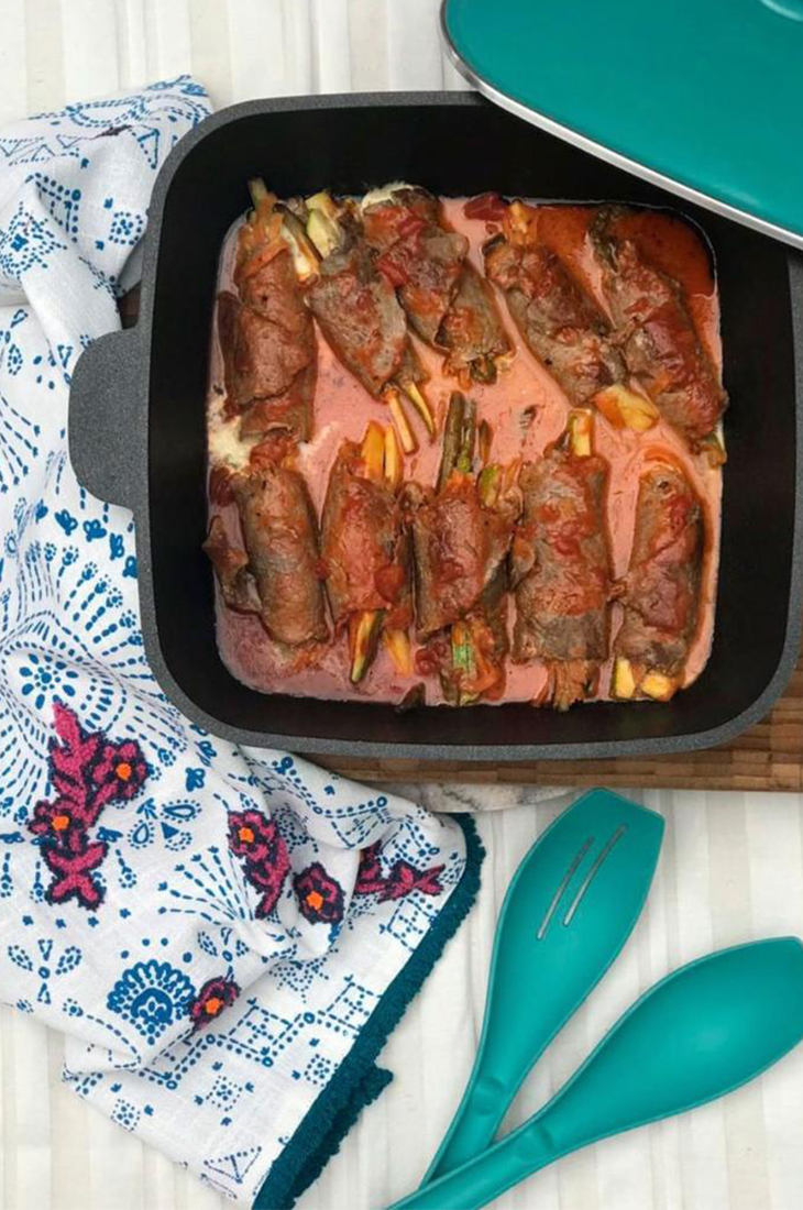 Rellenar con las verduras y el queso y enrollar.