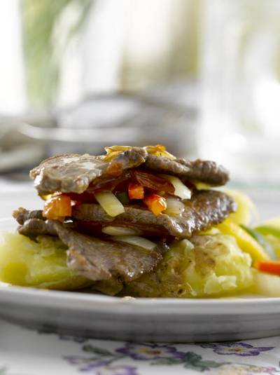 Calentamos la Sartén tapada. Agregamos el aceite y luego colocamos los bifes; tapamos y doramos de ambos lados, a fuego fuerte.