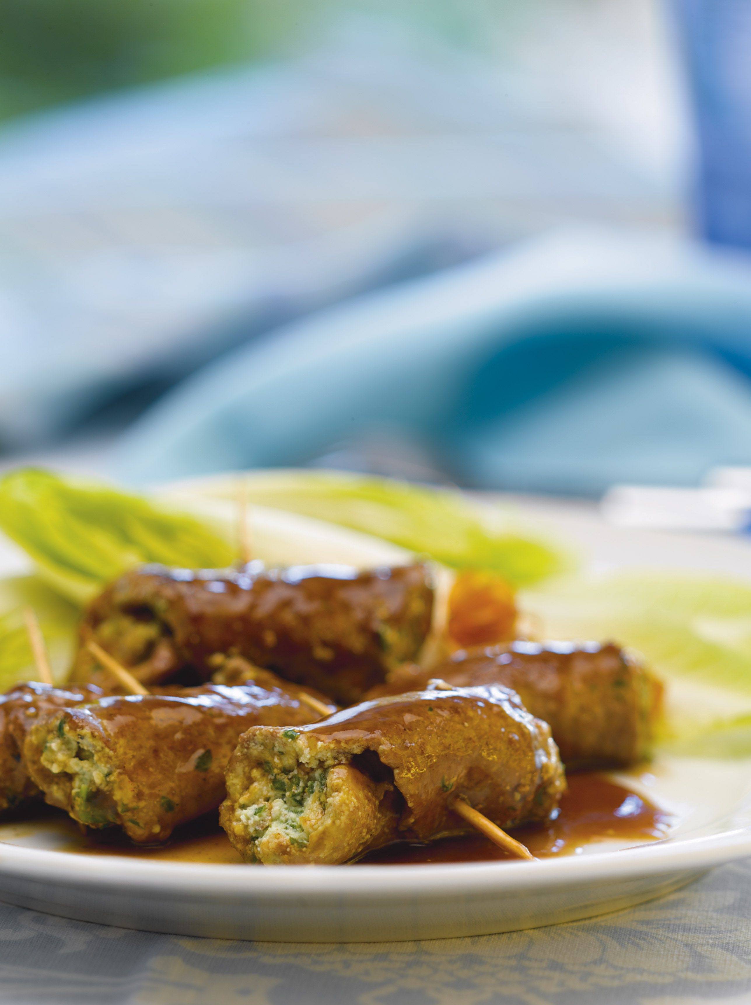 Enrollamos y sujetamos con palillos.