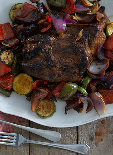 Cortamos la carne en porciones y acompañamos con las verduras.