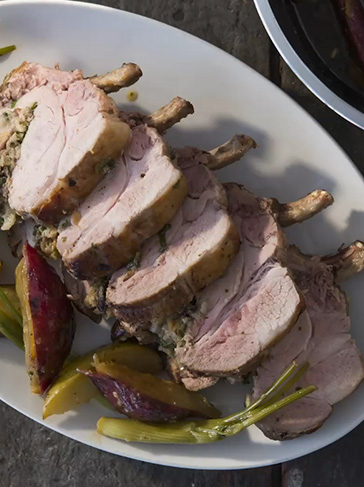 Abrimos el carré a lo largo con un corte transversal. Rellenamos bien y lo atamos.
