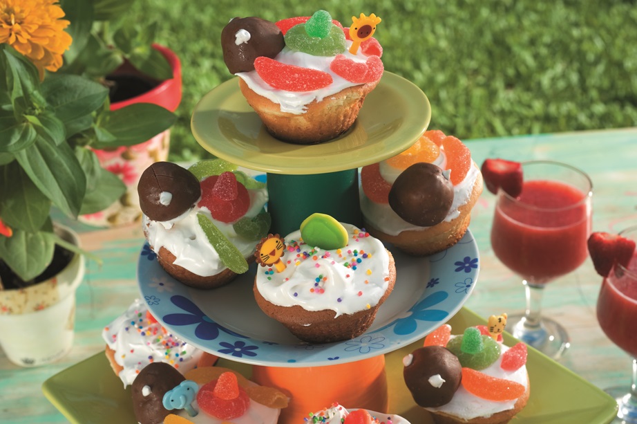 • Decoramos con caramelos de goma. También podemos decorar con frutas frescas, confites o grageas de colores.
