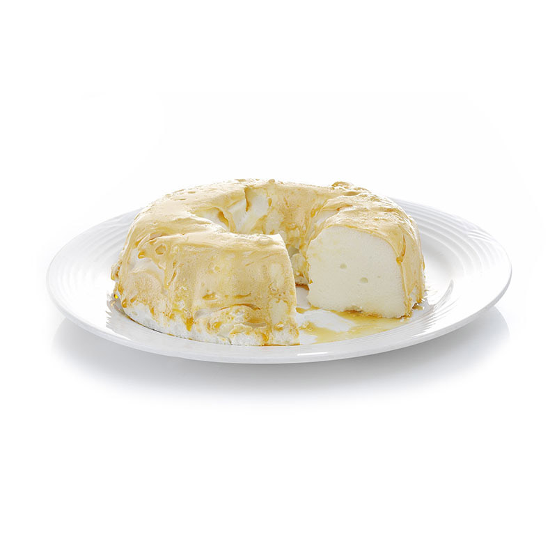 • Volcamos la preparación en el Savarin acaramelado de forma pareja sin dejar espacios de aire.