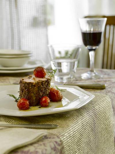 • Procesamos o molemos en un mortero el comino con el perejil, el coriando y el ají molido. Agregamos el aceite de oliva. Untamos el lomo.
