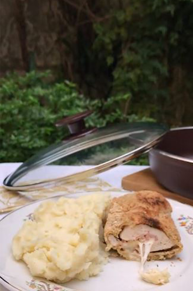 Antes de servir no olvidemos retirar los palillos de madera. Servimos las milanesas con el puré como guarnición.