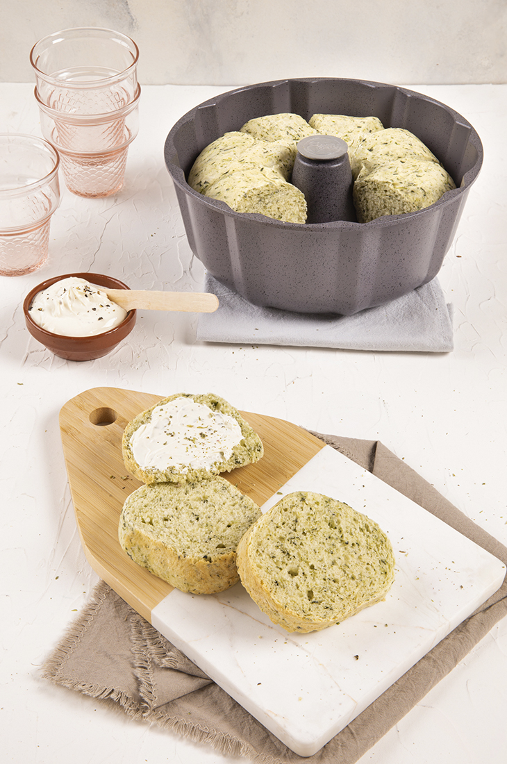Lubricamos el Savarín con aceite y acomodamos la masa adentro. Dejamos fermentar 30’ en la Cacerola tapada.