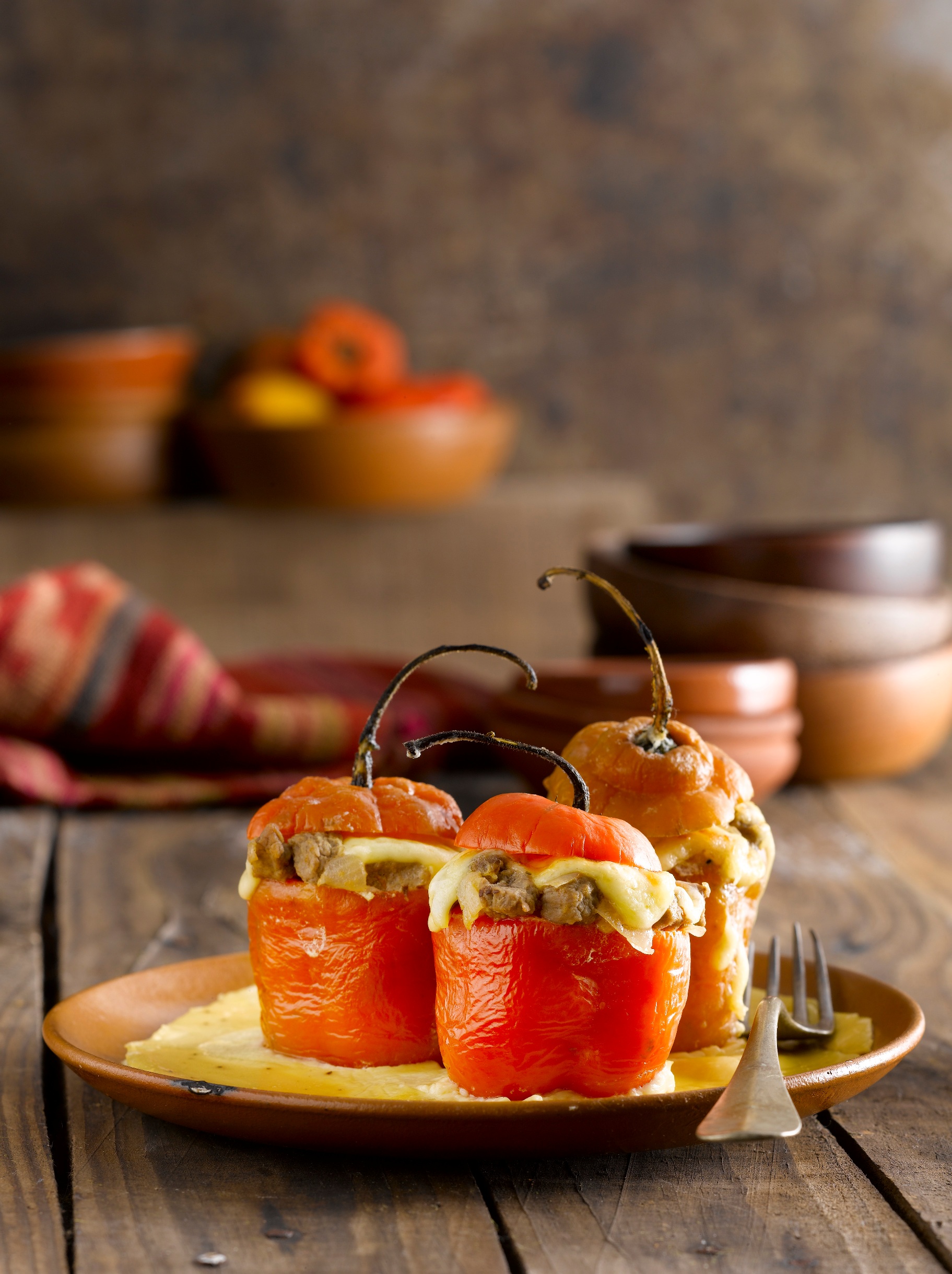 •       Rellenamos los rocotos con la mezcla y en cada uno agregamos además 2 aceitunas.