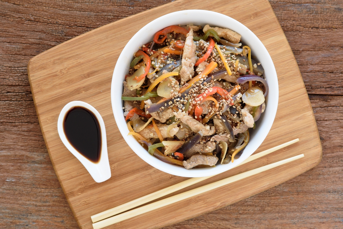 6 – Por último, condimentamos y mezclamos. Servimos con semillas de sésamo tostadas y arroz blanco.
