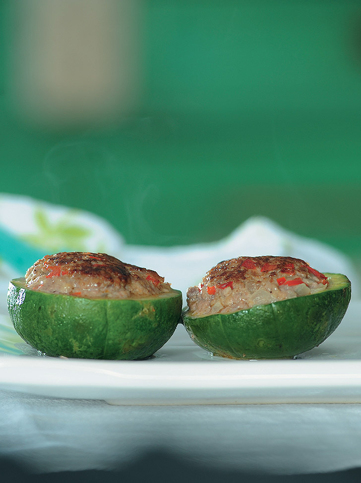 1 - Cortamos a la mitad cada uno de los zapallitos y los ahuecamos con una cuchara.