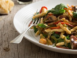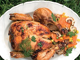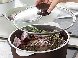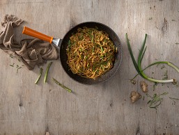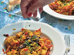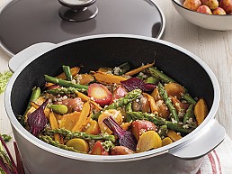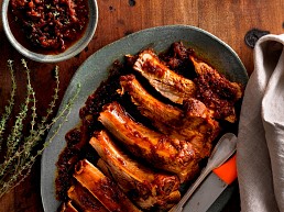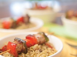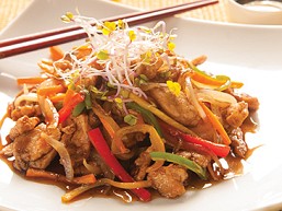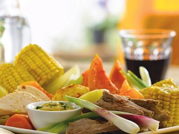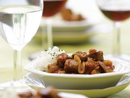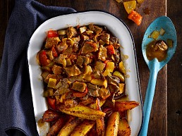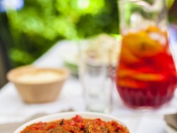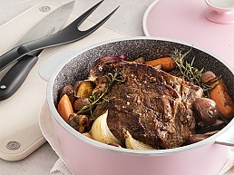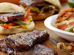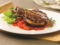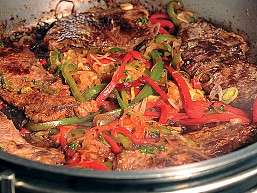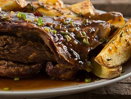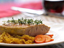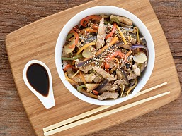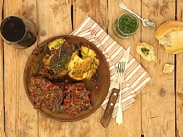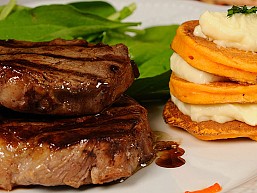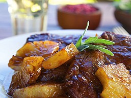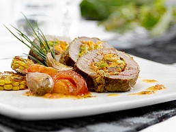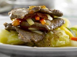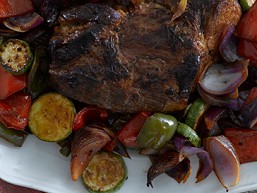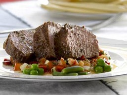 Roast beef con salsa de vino tinto y salteado de vegetales