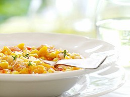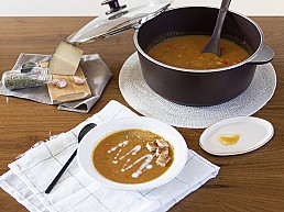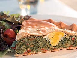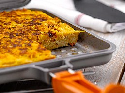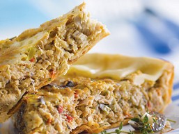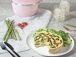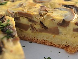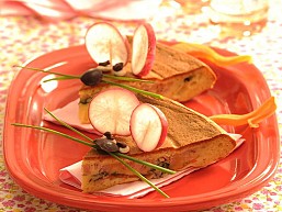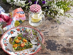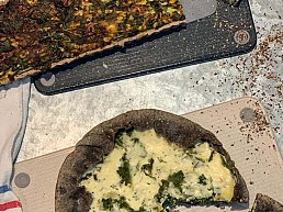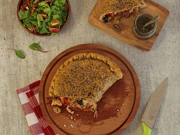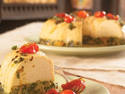 Tarta soufle de queso y tomates cherry con masa de semillas