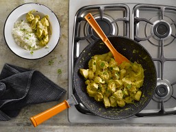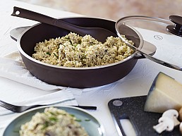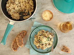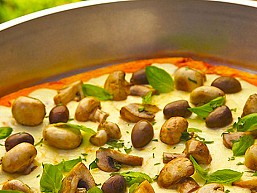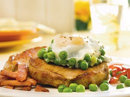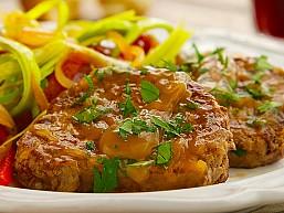 Milanesas de Hongos con espinacas a la crema y chauchas con huevo poché