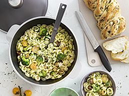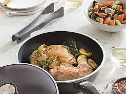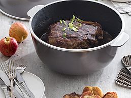 Pieza de amplio diámetro, ideal para familias numerosas de 5 o 6 personas. Es una cacerola ideal para la cocción de carnes rojas, guisos, tartas, presas de pollo, salsas, etc.