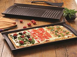 Pieza de diseño vanguardista en el territorio de los grills y biferas, con gran capacidad de cocción gracias a su superficie longilínea cubriendo dos hornallas de la cocina.