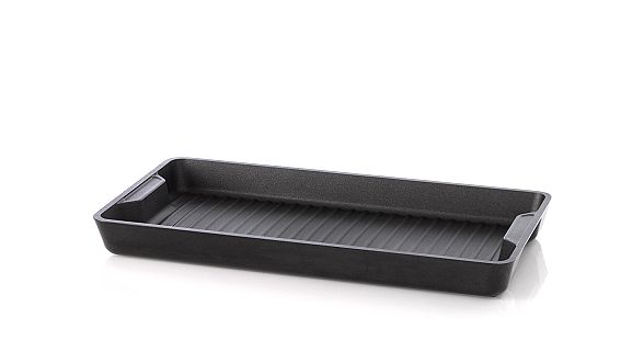 Destaca por su concepción funcional y práctica. En ella las asas se integran a la morfología de la pieza. Las paredes laterales verticales protegen del salpicado durante la cocción y a la vez guían los jugos cuando se desea retirarlos de la pieza.